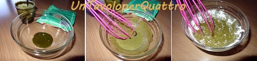 Ho aggiunto la pasta di pistacchio, poi la farina miscelata con il lievito e il sale.